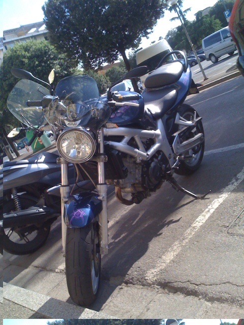 ciao a tutti! ecco la mia prima moto, una SV650 del 2001... pagata 850€!!! (un furto...). ci ho dovuto un po' lavorare (solo esteticamente perché alcune cose non mi piacevano...ma sono un aggeggione e mi è piaciuto farlo...)