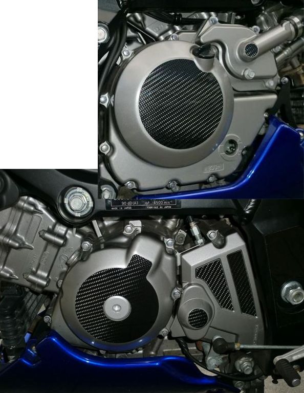 rivestimento carter motore (destro/sinistro) + rivestimento tappo radiatore (le parti che saranno rivestite sono quelle indicate in rosso nelle due foto)