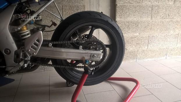 Vendo cerchi in magnesio completi di pneumatici (Anterio K2 slick 70/80% posteriore k2 intagliato 30%) dischi anteriori, disco posteriore, mozzo porta corona e boccole per sv 650 a carburatori. Cerchio posteriore da 5". Regalo corona, catena e pignone
