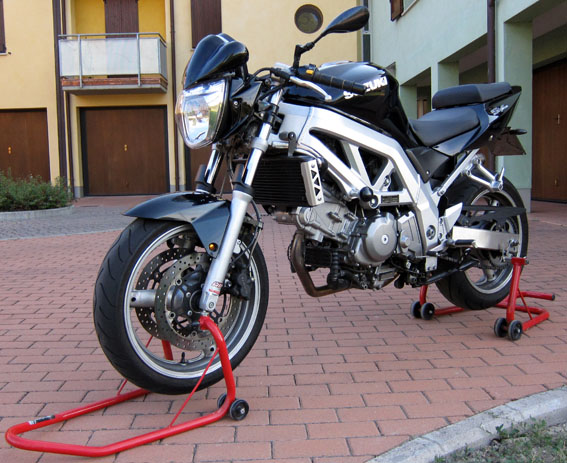 Vendo Suzuki SV650, colore nero, luglio 2003, km.31800, gommata Metzler M3 80%, perfettamente funzionante e tenuta bene, usata solo per svago in qualche week-end. La moto monta 2500€ di parti speciali come la marmitta Akrapovic con silenziatore in carbonio completa di collettori, kit WP per le forcelle anteriori completo di olio, molle e pompanti, semimanubri e piastra originali Suzuki del modello S, pompa radiale per il freno anteriore e tubi in treccia per entrambe i freni, fanale e fianchetti fanale Suzuki GSR600, tamponi d’alluminio, frecce piccole, specchi piccoli similcarbonio, portatarga rialzato e disponibili anche degli arretratori per le pedane, un cupolino e un parafango posteriore. Chiaramente completa anche di tutti i pezzi originali. Prezzo € 2800 trattabili. Pagamento in contanti. Per la spedizione del mezzo via corriere ci si può accordare anche se è preferibile il ritiro a mano eventualmente incontrandosi a metà strada. Tel. dopo le ore 16 al 329/1528733 o durante il week-end.