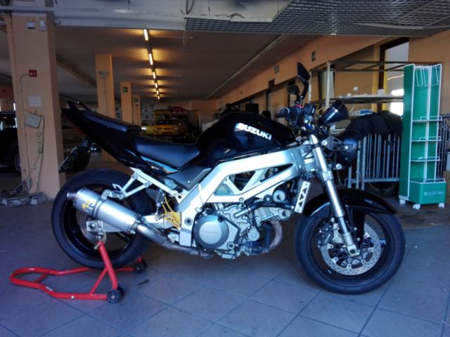Immatricolata a Dicembre 03, moto bella e senza problemi, 36000 km circa di cui 25000 fatti da me. Avantreno composto da piastre GSXR 1000 K9 e forcelle gsxr 1000 k3 revisionate a marzo. Manubrio da 28, terminali Leovince SBK, pedane arretrate ValterMoto. A Marzo è stata messa la batteria nuova, cambiate le candele e tagliandata. Viene fornita con Dunlop Qualifier 2 con circa 1000km, filtri aria e olio k&n ancora da montare, li metto in questi giorni, cambio olio e pastiglie Brembo SA al 50/60%. Tubi in treccia Accostato messi nuovi a luglio, davanti e dietro, porta targa omologato con luce ValterMoto, scarichi originali in dotazione. Bollo 07/2017 revisione da fare a metà 2017.
