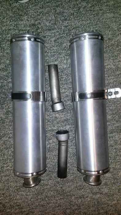 Se a qualcuno possono interessare dispongo di coppia silenziatori rotondi omologati marca Rombo, con Db killer estraibile e traversino, Fodero in alluminio, fondello uscita in inox, fondello entrata in alluminio dal pieno (indistruttibile). Montano su SUZUKI SV 1000 S e N dal 2003 in poi. In ottime condizioni come da foto, con lana di vetro sostituita da 1000km.