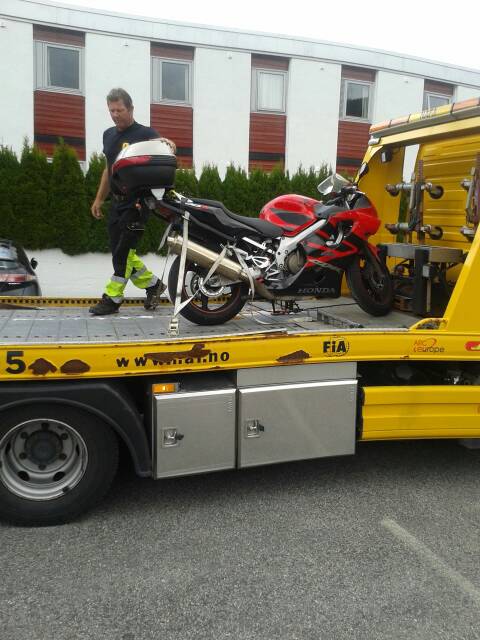 Ora aspetto il carro attrezzi dell'assicurazione che porterà la moto in officina x valutate tempi e costi.