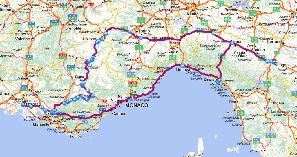 - la spezia -> mentone -> aix en provence : autostrada per "toglierti" la liguria, comunque un bel viaggiare..