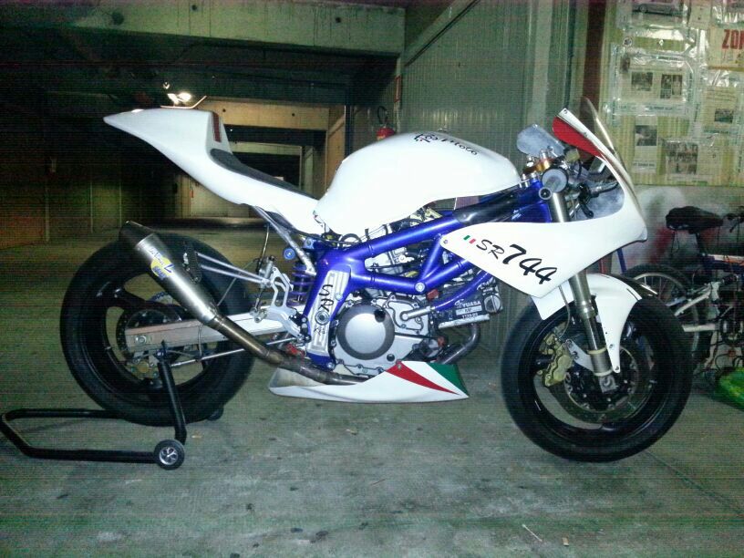 Ahahaha sti prepuzi non l avevo ancora sentita bellissima ahahah!praticamente e andata cosi a luglio ho preso una sv da ros normalissima di quelle solo coi telaietti che fa lui e le forcelle rovesciate ducati a 2500 euro non sapevo se mi sarebbe piaciuto ne venivo da una aprilia 125 che non sono ancora riuscito a vendere!dopo 2 3 uscite in pista ero soddisfatto della moto ma non tanto di alcune cose quindi volevo investire qualcosa per migliorarla chiamo ros che aveva questa già pronta completa davvero di tutto non le manca nulla gli ho ridato indietro la mia ho aggiunto 2000 e preso questa!davvero un altro mondo guidabilita fantastica facile molto più facile dell altra che non l avrei mai detto!ha 95 cv alla ruota e pesa sui 130 chili ora sto verniciando i cerchi e appena e pronta con adesivi e tutto posto nuove foto!grazie a tutti dell accoglienza