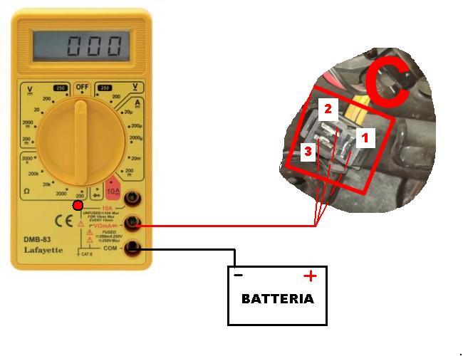 Poi prova la tensione verso il negativo della batteria ( massa ) a motore acceso, 5000 giri Non devi leggere niente , ovvero [ 0.0]