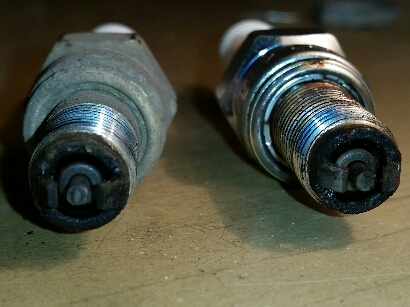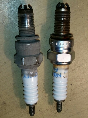 Ho fatto come detto... ho tolto la candela, su quella vecchia ho messo l'olio ed ho inserito e disinserito diverse volte. Alla fine il risultato per entrambe ( retro e ant) è quello in foto.