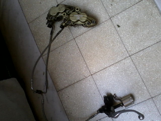 Salve a tutti..come da titolo vendo un impianto frenante completo montato in origine su Raptor 1000...l'impianto e' composto da pompa nissin assiale da 16,vaschetta liquido in alluminio(un po' rovinata),tubi in treccia d'acciaio e pinze brembo serie oro interasse 65 mm complete di pasticche.Per montarle occorrono solo gli adattatori per le pinze reperibili sul forum...per le ultime versioni sv credo vadano bene cosi'...anche le nissin dovrebbero essere interasse 65..ad ogni modo informatevi.Inutile dire che e' un buon upgrade..rispetto all'impianto originale queste freeeenanooo
