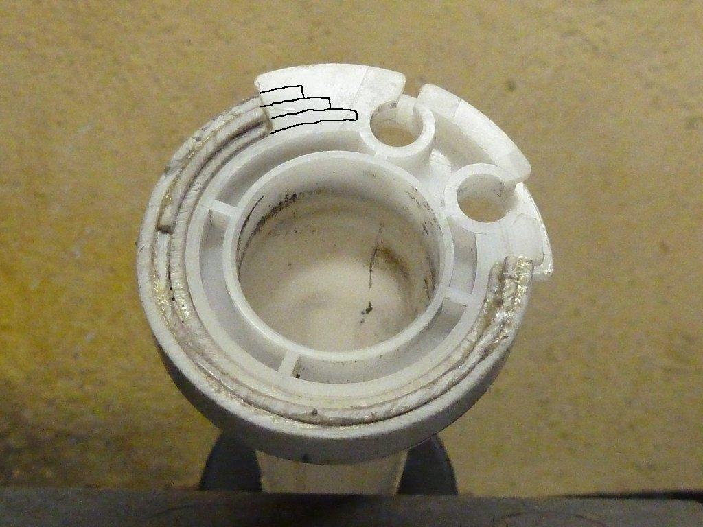 Anche il foro che si intravede al centro dei due denti non ho capito a cosa serve, forse è uno scolo per le infiltrazioni d’acqua, comunque non interviene nel funzionamento del tamburo. Quindi bisogna lavorare i denti.