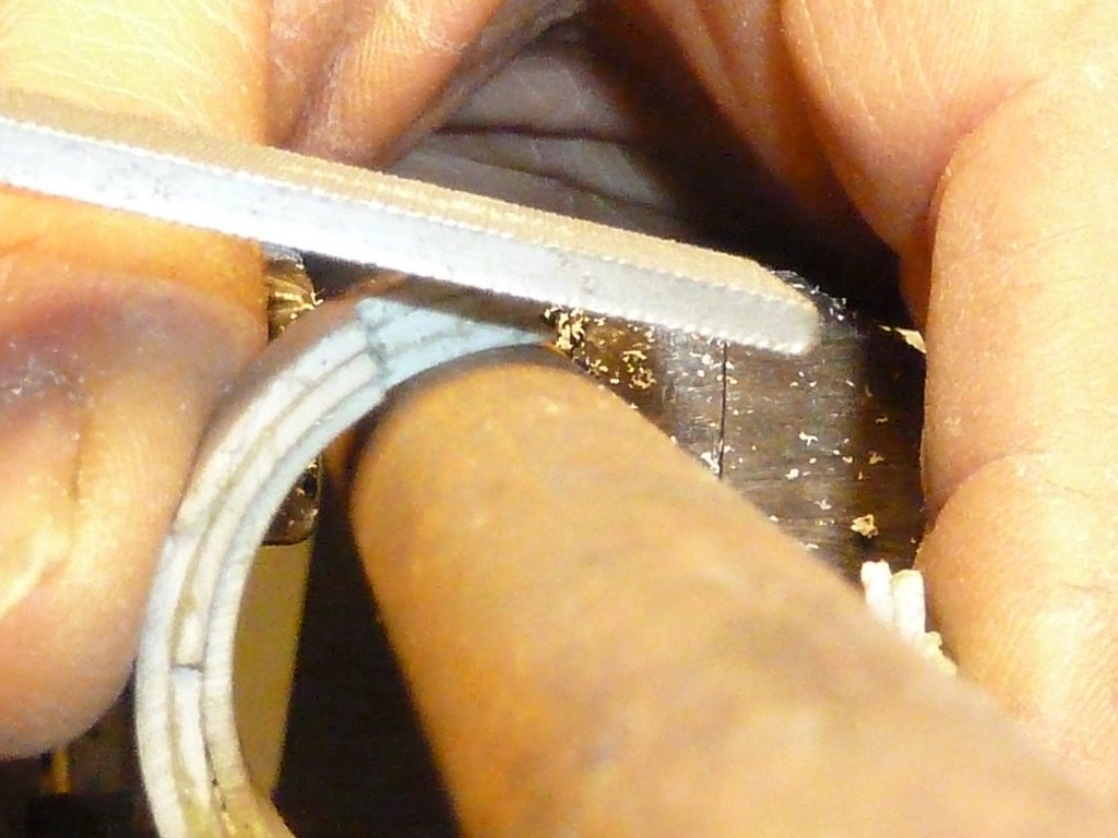 Tutti gli anelli, e le relative punte, devono essere ben a contatto uno con l’altro, quindi bisogna limare un poco alla volta ogni punta fino a farla “sprofondare “ completamente nella gola della scanalatura.