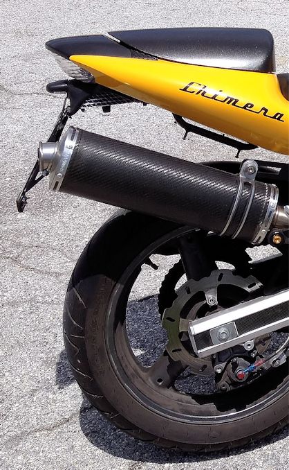 La luce targa originale è stata tolta (e montata una più piccola) così come è stata tagliata la plastica della coda dove si innestavano le frecce originali.