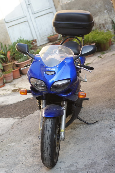 La moto ha poco più di 38000 km ed io sono il secondo proprietario ma in mio possesso ha fatto si e no 300 km,poi è stata messa in garage.In quanto preferisco le carenate ho voluto comprare e metter su anche la carerena completa dotazione che fornisco assieme alla moto un bauletto con apposite staffe Givi sul codone e una borsa magnetica da serbatoio.