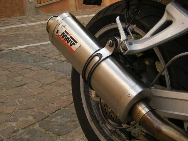 Scarico (soltanto il terminale, ma ho anche dei collettori, a parte) ovale inox MIVV con omologazione (documento originale) e db killer estraibile, leggerissimo, bel sound: 120 euro