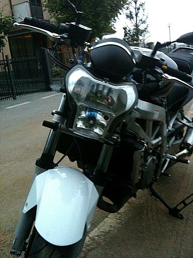 Faro anteriore tuning - Modifica forcelle originali e mono - manubrio piega bassa ORO - tubi areonautici - cerchi verniciati modifica airbox e filtro in spugna - terminali leovince SBK accorciati - specchietti e portatrga valtermoto - TUTTO OMOLOGATO CE