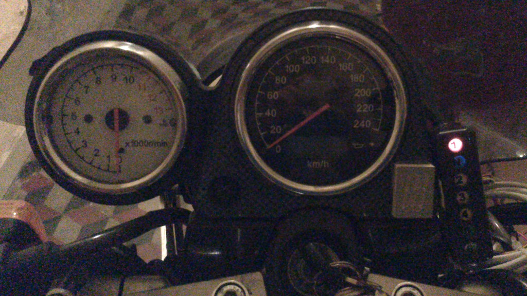 Mi piacerebbe metterlo fra contagiri e contachilometri, inposizione arretrata, ma la copertura cromata degli strumenti crea dei riflessi assurdi di sera.