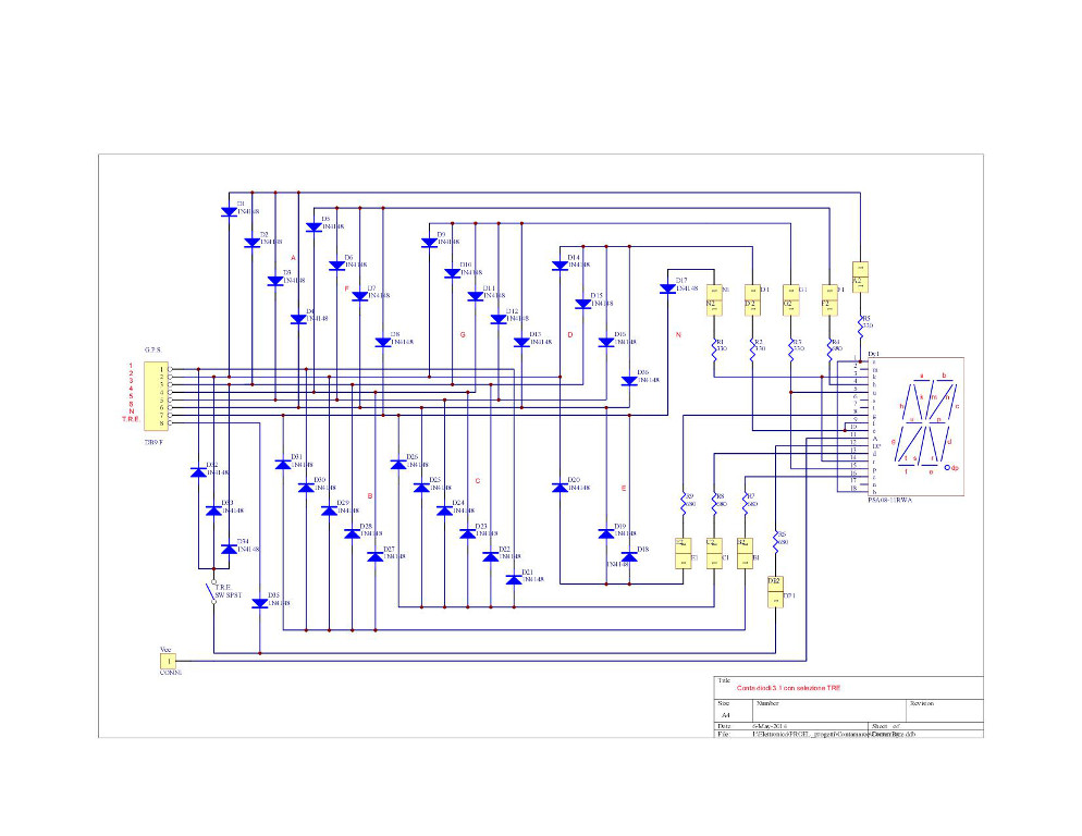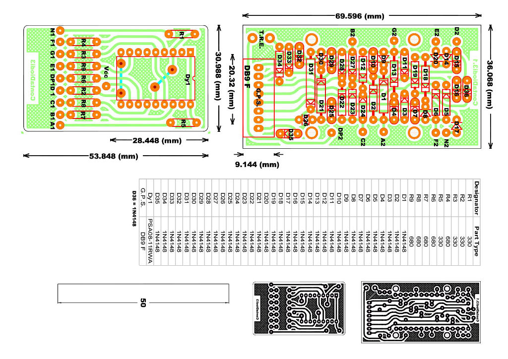 Questo è lo schema dell'indicatore a display Di seguito gli stampati e i disegni di montaggio Chi volesse i PDF, più chiari come visualizzazione, li trova qui: