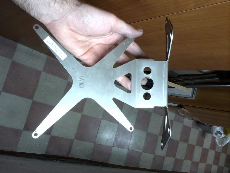 eccomi...scusa il ritardo....qui ci sono alcune foto del portatarga.E' del tipo fisso in acciaio...quindi non tende a rompersi come quelli regolabili(ne ho rotto uno con le vibrazioni prima di prendere questo!!).Per l'inclinazione...una volta montato puoi scegliere quella che vuoi dato che puoi fletterlo come ti pare.Con l'inclinazione attuale non ho mai avuto problemi di nessun genere.