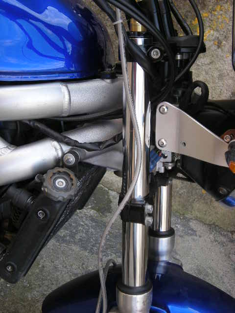 Staffa in metallo stampato per scarico (attualmente non compresa nelle foto) per reggere il terminale senza dover lasciare la pedana dx passeggero: 20 euro