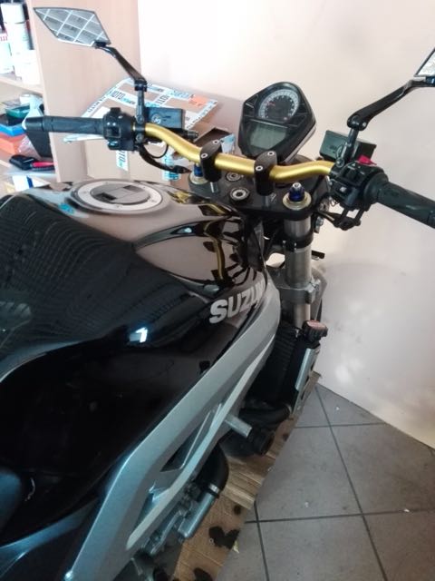 Immatricolata a Dicembre 03, moto bella e senza problemi, 36000 km circa di cui 25000 fatti da me. Avantreno composto da piastre GSXR 1000 K9 e forcelle gsxr 1000 k3 revisionate a marzo. Manubrio da 28, terminali Leovince SBK, pedane arretrate ValterMoto. A Marzo è stata messa la batteria nuova, cambiate le candele e tagliandata. Viene fornita con Dunlop Qualifier 2 con circa 1000km, filtri aria e olio k&n ancora da montare, li metto in questi giorni, cambio olio e pastiglie Brembo SA al 50/60%. Tubi in treccia Accostato messi nuovi a luglio, davanti e dietro, porta targa omologato con luce ValterMoto, scarichi originali in dotazione. Bollo 07/2017 revisione da fare a metà 2017.