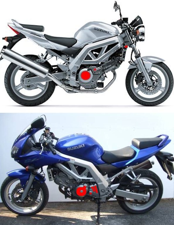 rivestimento carter motore (destro/sinistro) + rivestimento tappo radiatore (le parti che saranno rivestite sono quelle indicate in rosso nelle due foto)