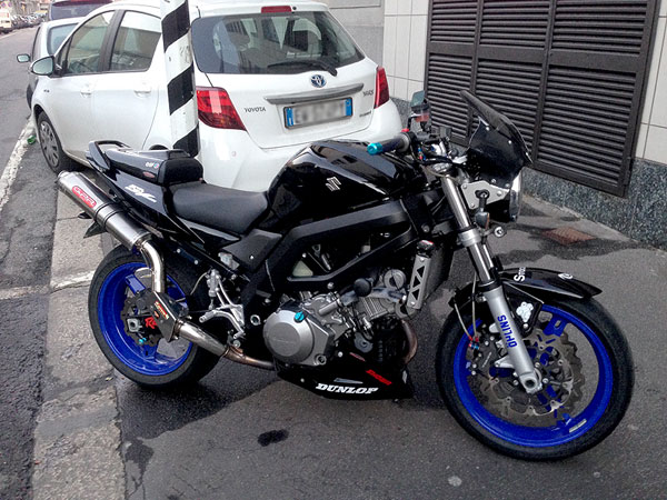 Dopo essere sceso da uno Speed Triple ho deciso di tornare su un bel bicilindrico e cosí da un paio di giorni nel mio box vive una bella SV1000 total black.