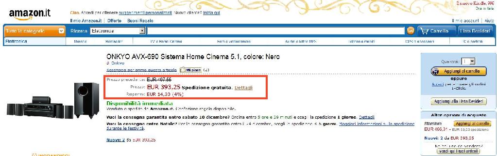 Amazon ha scritto:EUR 393,25 Spedizione gratuita