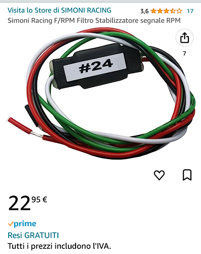 Intanto il quadro andrà impostato su 1 cilindro(visto che il filo giallo-nero è collegato solo ad una bobina), se i giri appaiono ancora molto instabili serve un filtro acquistabile su Amazon del tipo quello in foto che andrà collegato come nello schema in foto.
