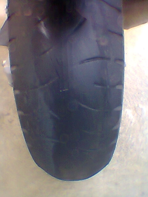Nel frattempo si sta per affacciare la tela sul pneumatico posteriore che si stà spellando tutto, ma in compenso ho potuto constatare il consumo regolare della gomma, mentre l'anteriore è semplicemente indurita, non si consuma più. Pericolosissima!!!