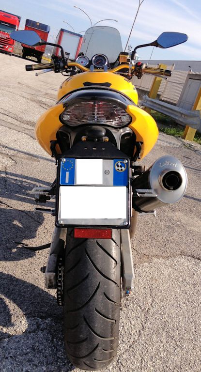La luce targa originale è stata tolta (e montata una più piccola) così come è stata tagliata la plastica della coda dove si innestavano le frecce originali.
