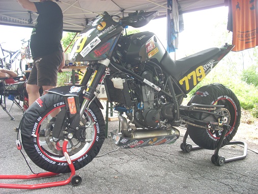 Ha messo insieme pezzi usati di varie moto. Principalmente un sxv 550 con avantreno di un 125 (mito?) carene ducati 999 e via in gara!