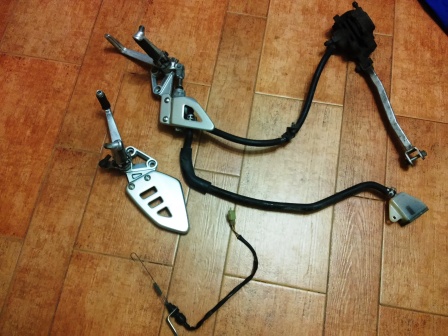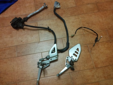 Ciao, mi serve tutta la pedana destra (me l'hanno rubata una sera fuori casa) completa di portapedana, serbatoio freno post, leva, poggiapiedi, dispositivo molla stop e tubo freno.