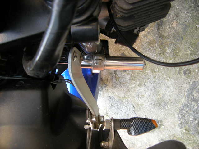 Staffa in metallo stampato per scarico (attualmente non compresa nelle foto) per reggere il terminale senza dover lasciare la pedana dx passeggero: 20 euro