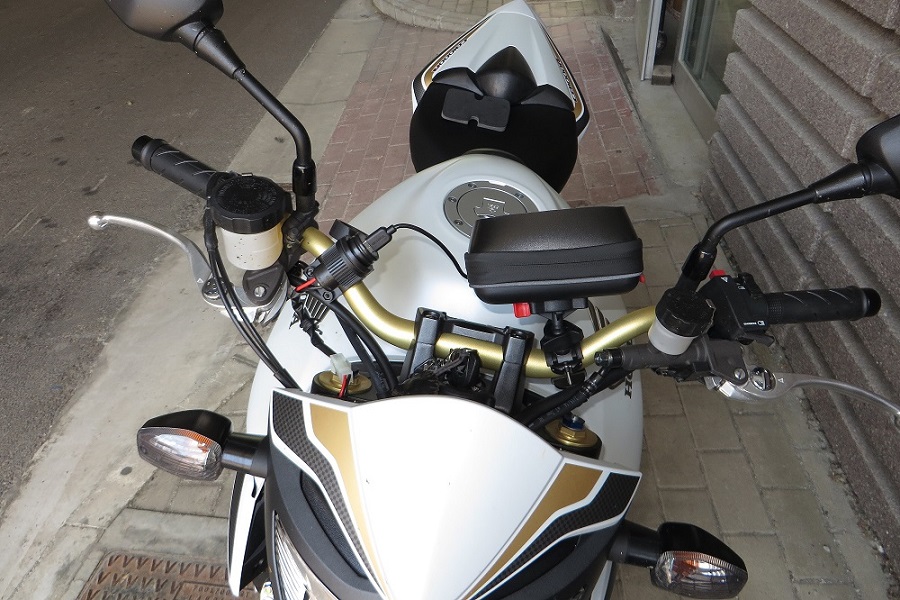 messo velcro adesivo sulla piastra di sterzo e sul GPS, testato fino a 240 km/h.