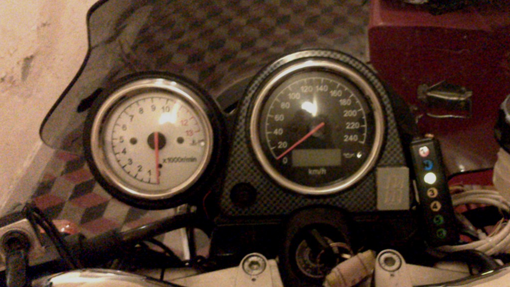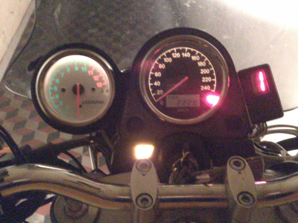 Mi piacerebbe metterlo fra contagiri e contachilometri, inposizione arretrata, ma la copertura cromata degli strumenti crea dei riflessi assurdi di sera.